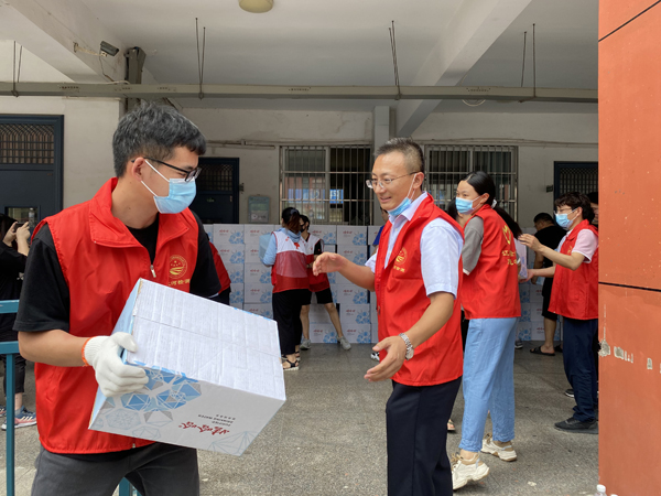 巖土部地質(zhì)院的2名青年志愿者和江河公司的9名青年志愿者,在聽到河南省人民醫(yī)院和21世紀(jì)社區(qū)有外地支援物資到達(dá),急需周邊志愿者幫忙卸貨的消息后,迅速趕往現(xiàn)場參與志愿行動,齊心協(xié)力搬運各地來豫的應(yīng)急救援物資,助力防汛救災(zāi)志愿服務(wù)行動。
